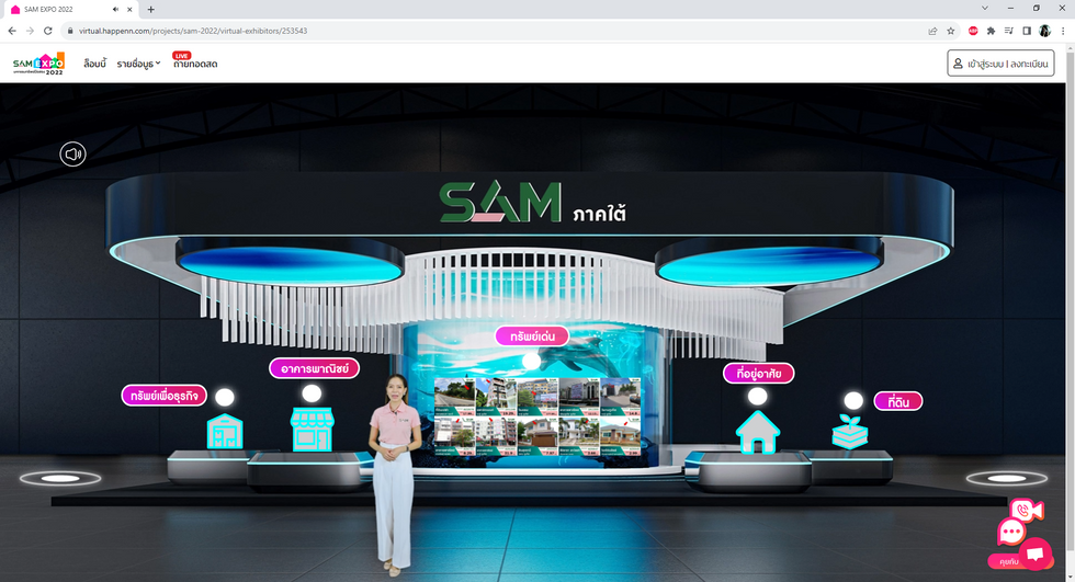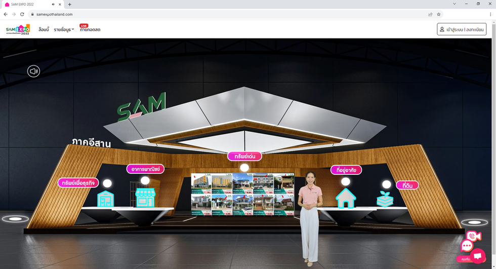 SAM recently organized the "SAM Expo" on a virtual online platform. The expo showcased over 600 listings of secondhand properties from across Thailand, including houses, townhouses, condominiums, commercial buildings, land, and other properties. The event's main attraction was the live streaming feature that allowed attendees to view the real properties throughout the expo.